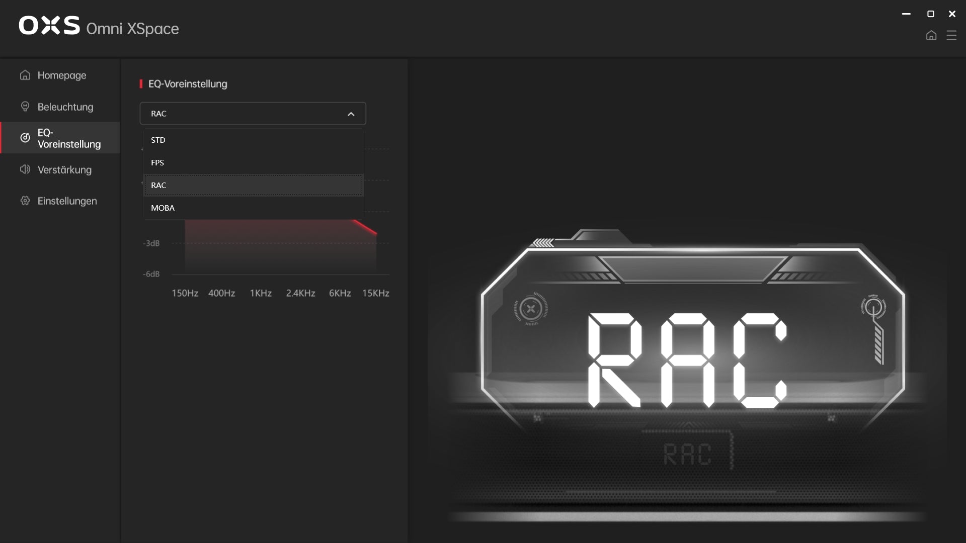 Es gibt 4 voreingestellte EQs: 3 Spielmodi (FPS, RAC und MOBA) und ein Standardmodus.