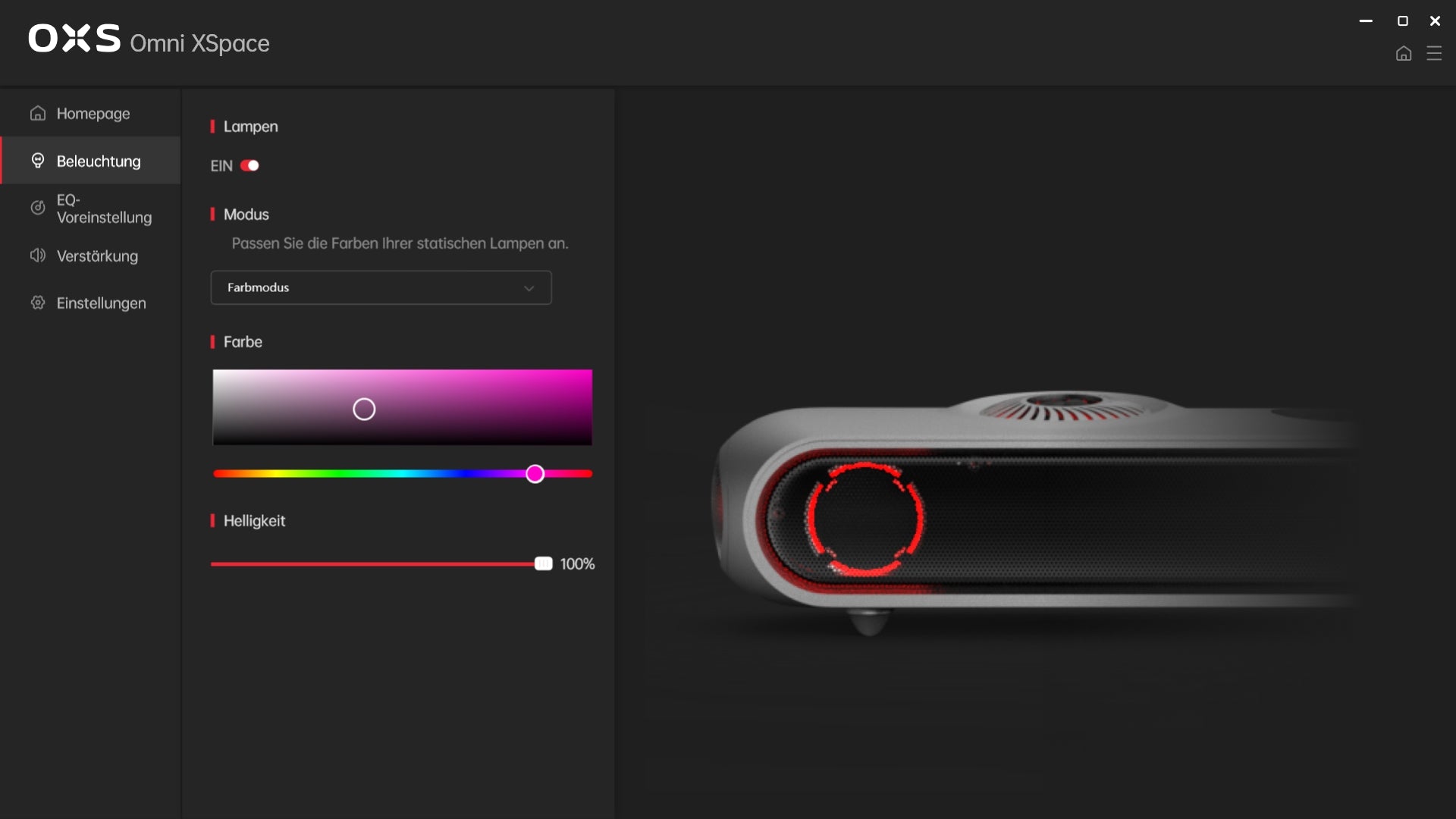 Passen Sie die Beleuchtung, den EQ-Modus, die Verstärkung und die allgemeinen Einstellungen an Ihre Vorlieben an.