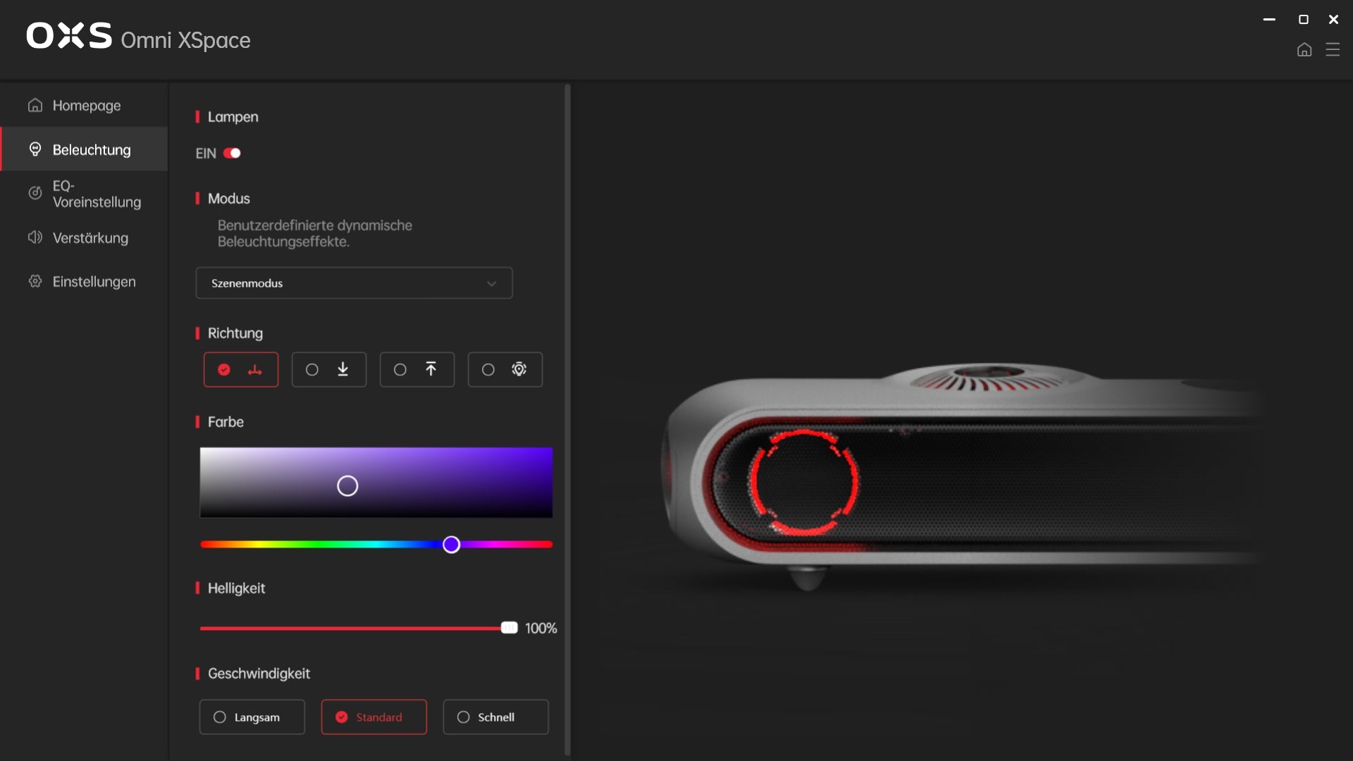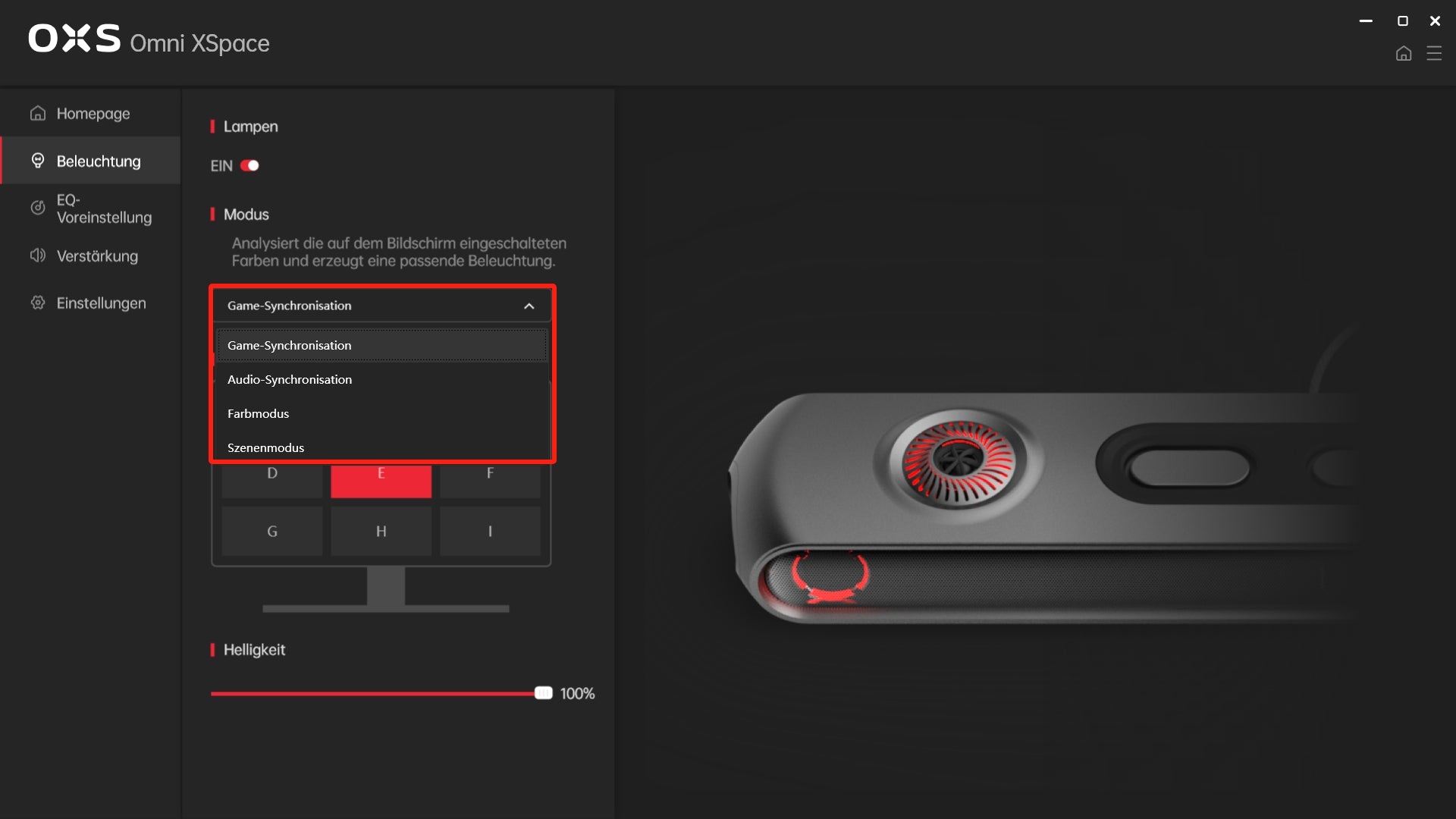 Die Gerätebeleuchtung wird mit dem Takt deiner Musik synchronisiert. Je stärker der Beat, desto heller die Lichter.