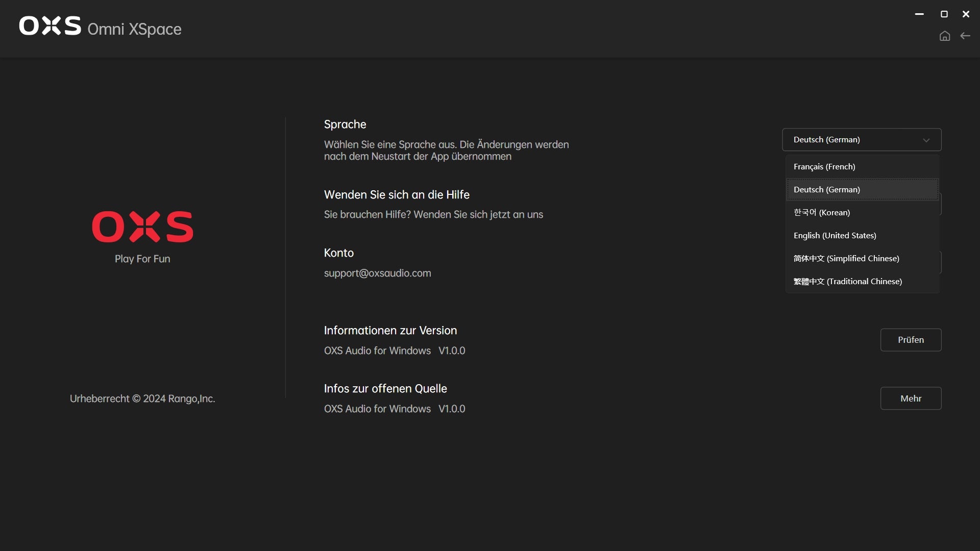 💡 Hinweis: OXS Audio ist derzeit nur mit Windows 10 64-bit und Windows 11 kompatibel. Versionen für Mac, iOS und Android sind in Entwicklung. Wenn Sie Vorschläge oder Wünsche zu den Funktionen der App haben, können Sie uns gerne per E-Mail kontaktieren oder Ihre Gedanken in unserer Facebook-Gruppe teilen.