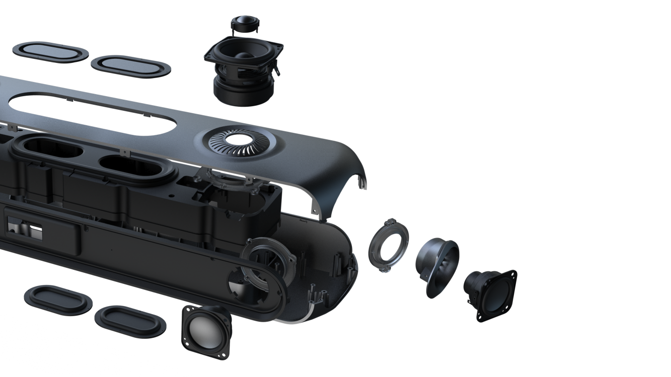 Jam-packed with innovation, OXS Thunder delivers unexpectedly big sound while the size is 40% smaller. It takes up almost no space under your monitor but fills the entire room with rich 360‑degree audio from every angle.
