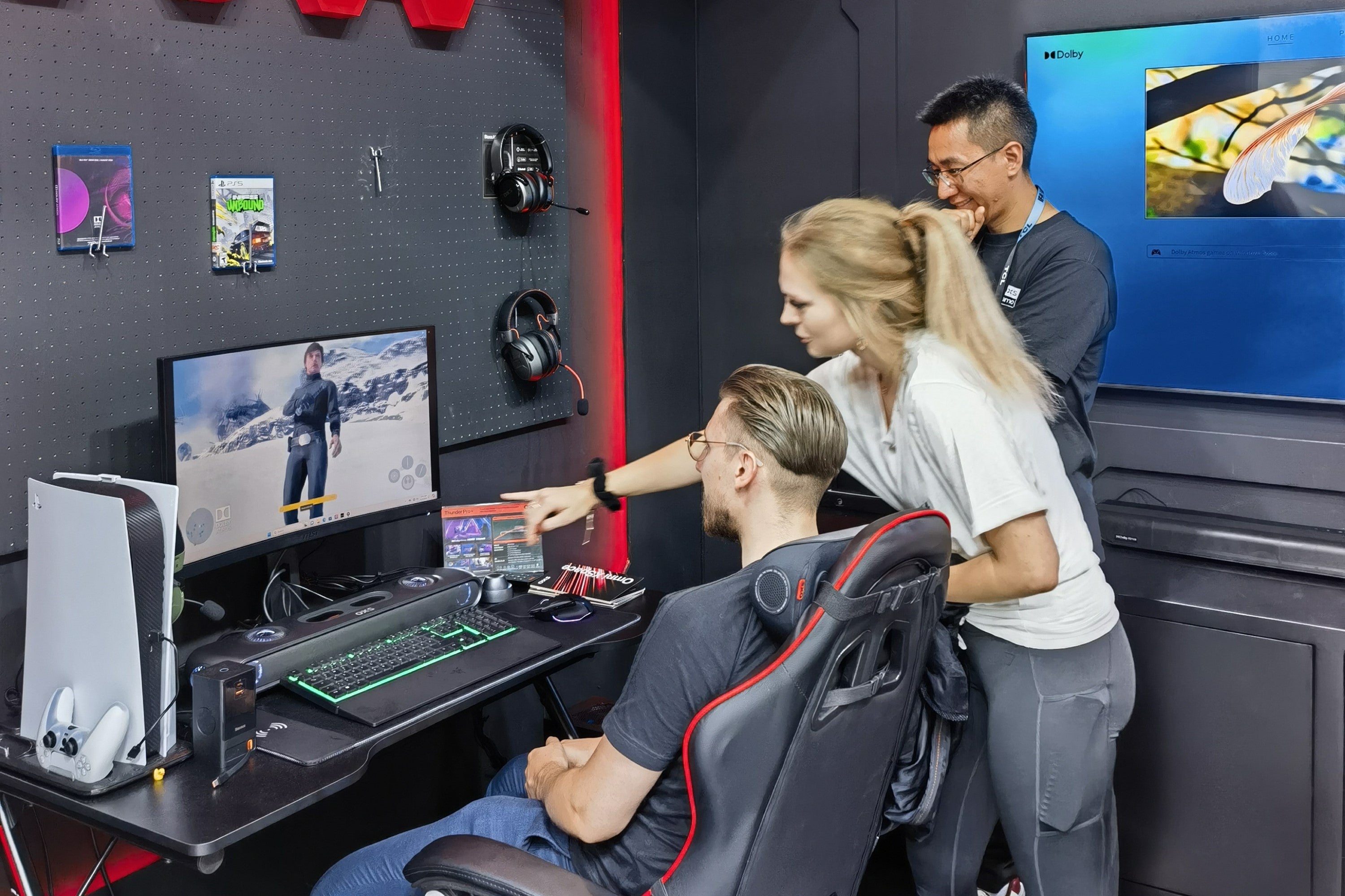 Meticulously crafted by OXS team over nearly two years, this masterpiece captured the attention of a large number of visitors with the world's first innovative 7.1.2 channel configuration, where a desktop soundbar meets a satellite neck speaker. Its revolutionary acoustics, distinctive aesthetics, and immersive audio-visual experience drew excitement from visitors eager to experience it firsthand. From casual gamers to dedicated audiophiles, everyone was deeply attracted by this pioneering setup.